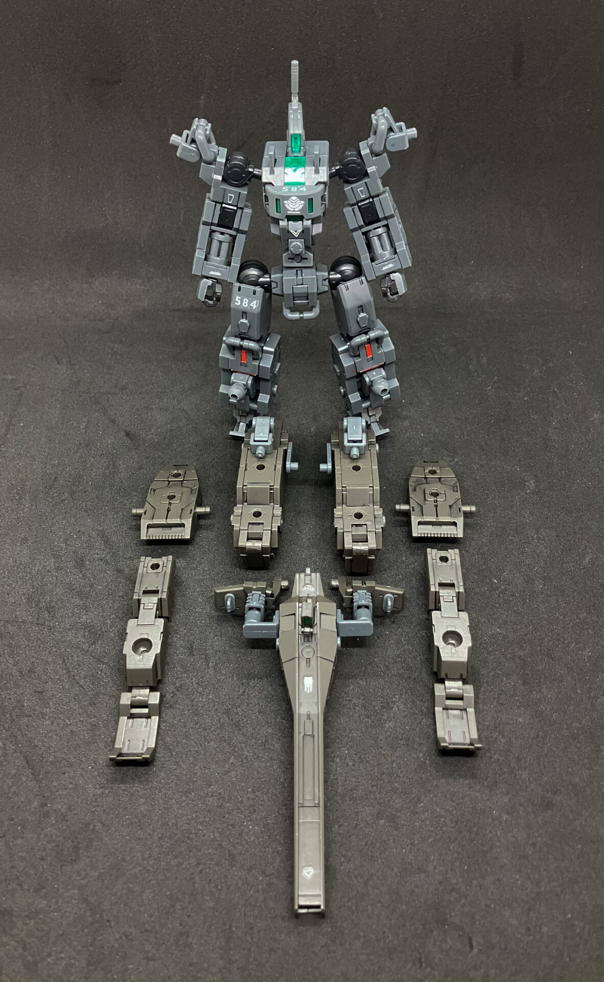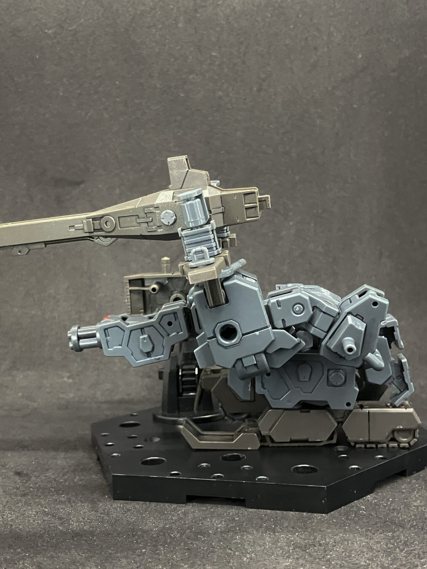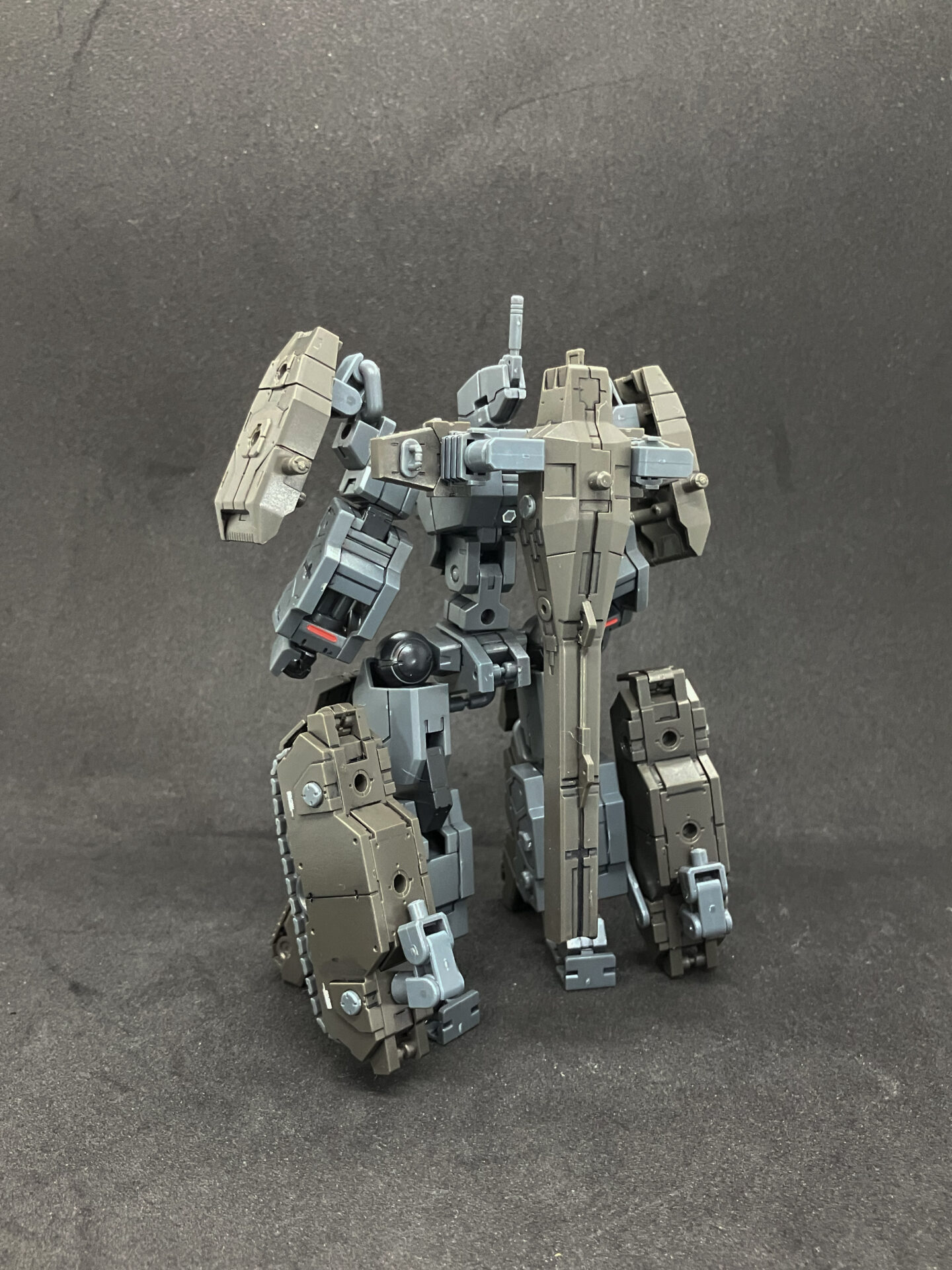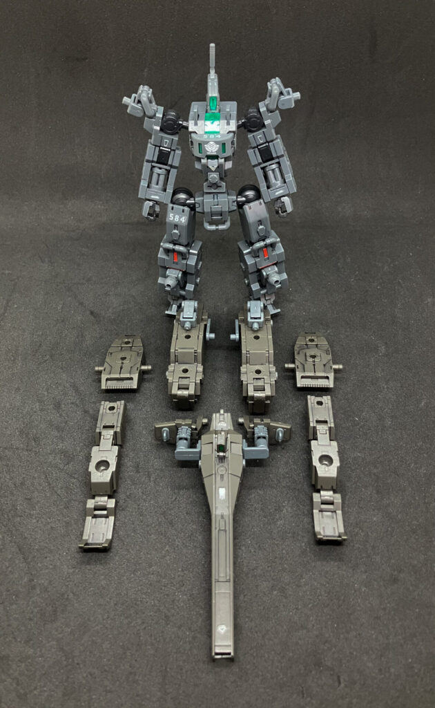 エグザビークル(可変戦車)完成しました! 小型可変機+タンクver(オリーブドラブ)を組み合わせ、本体の3形態+タンクのパーツ追加による5形態を追加して合計8形態を楽しめる、