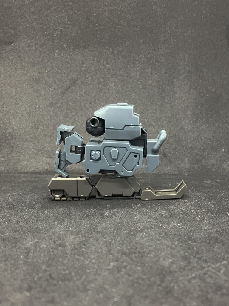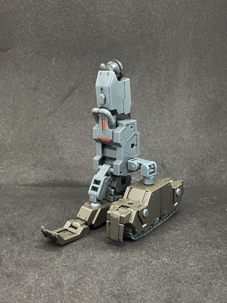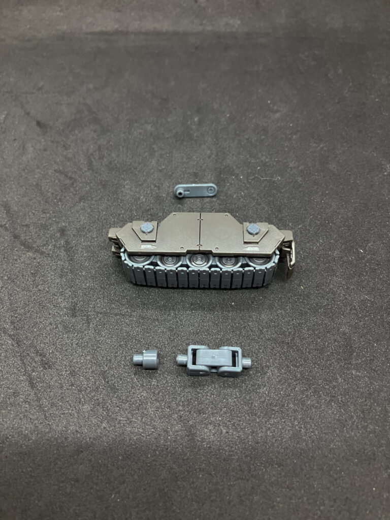 この次の変形。膝を折りたたみ、スネ正面の履帯と水平になるように。