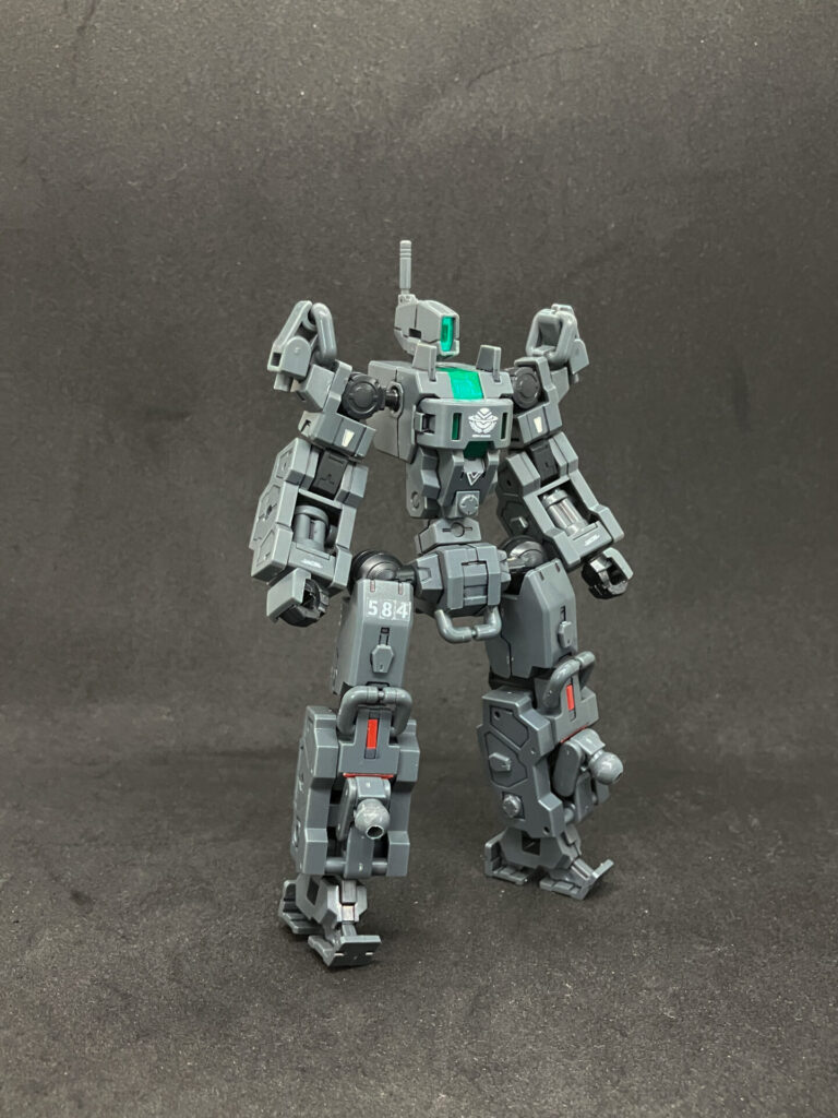30MM公式デカール①やアルト付属の数字テトロンシール(機体番号は584)を貼った後、水性の半光沢クリアーでトップコート。