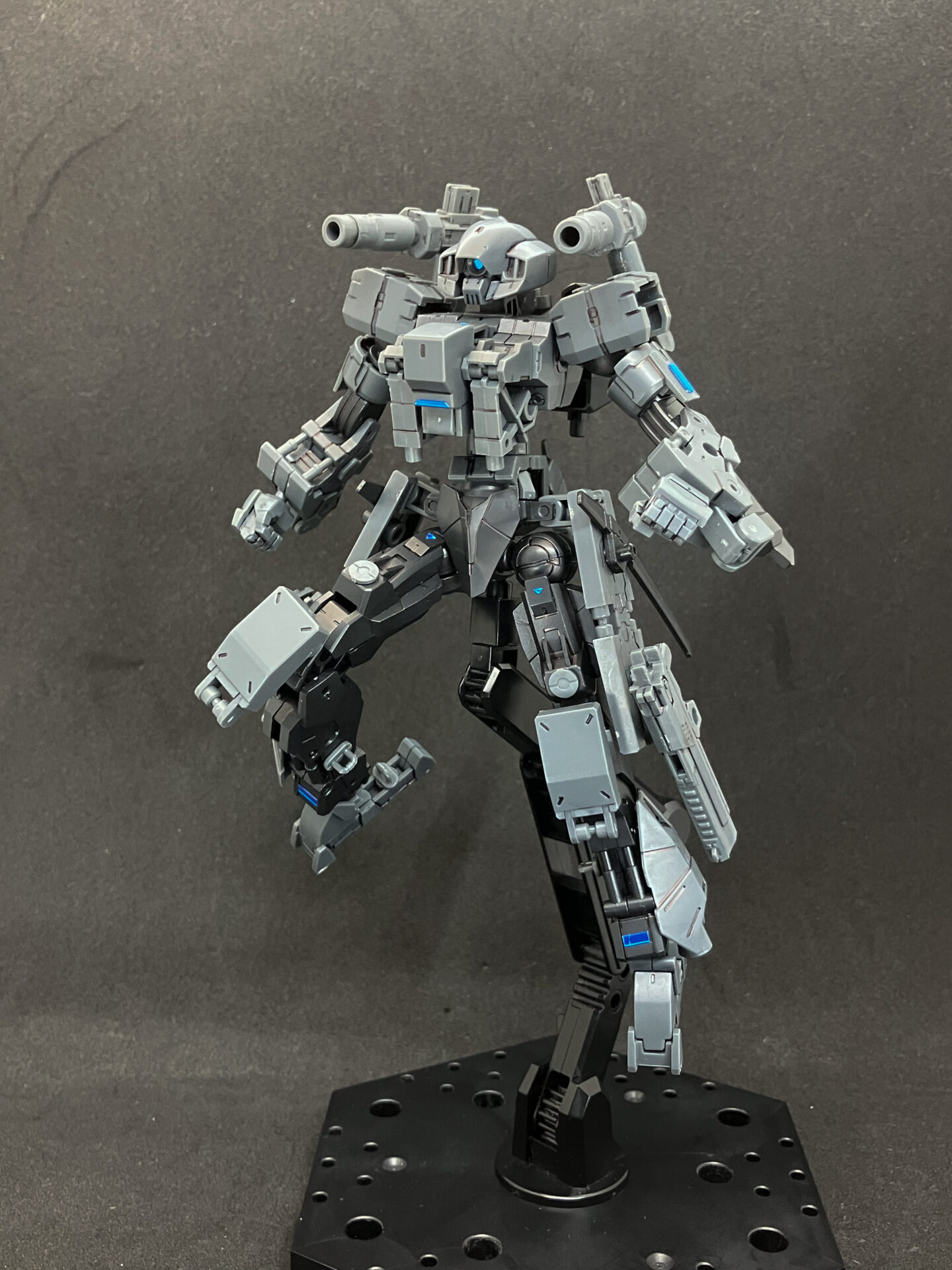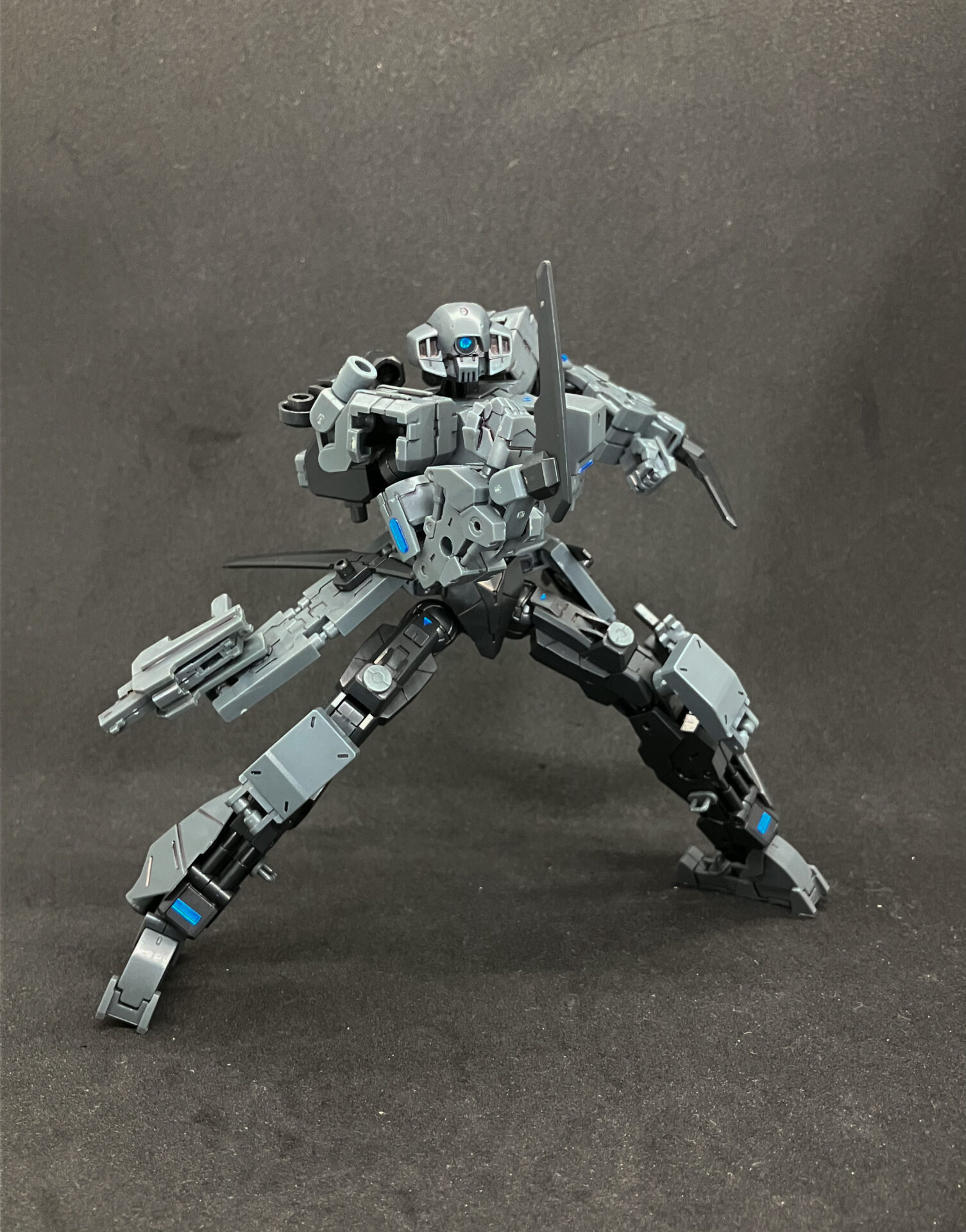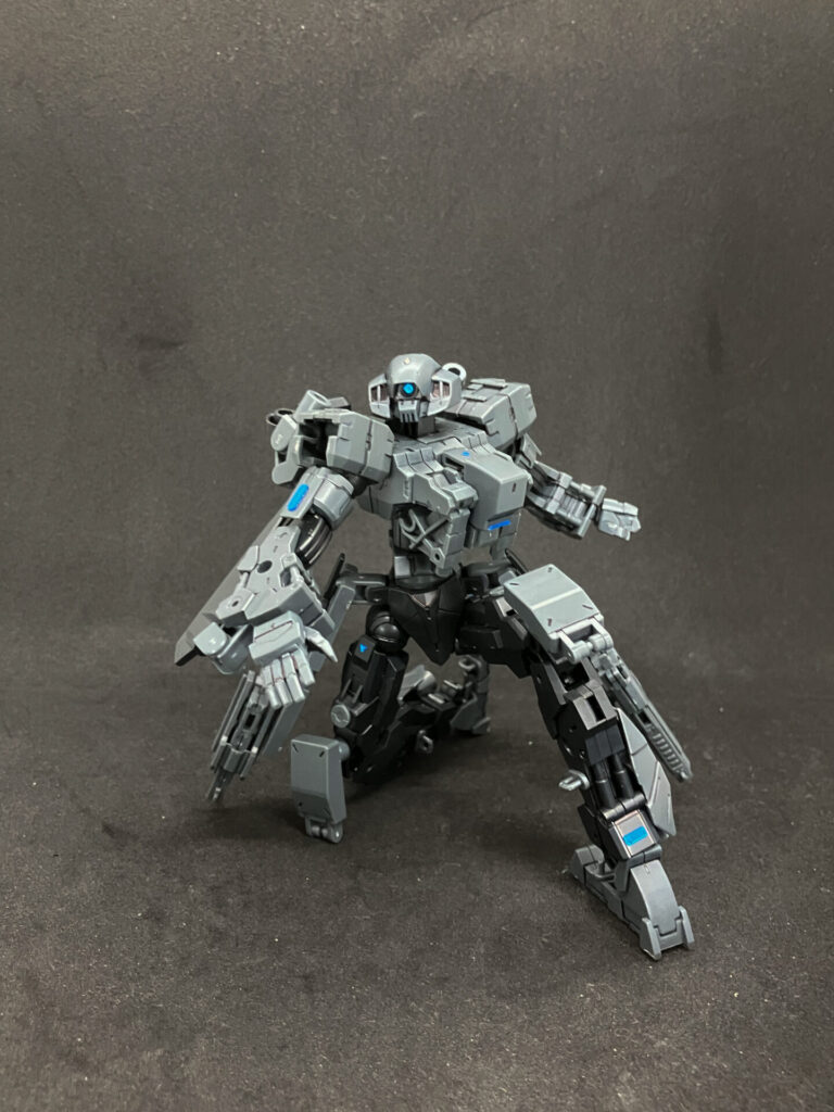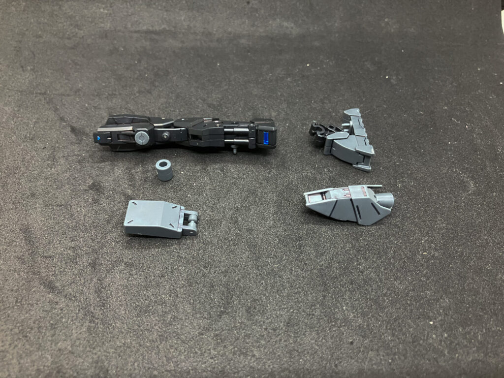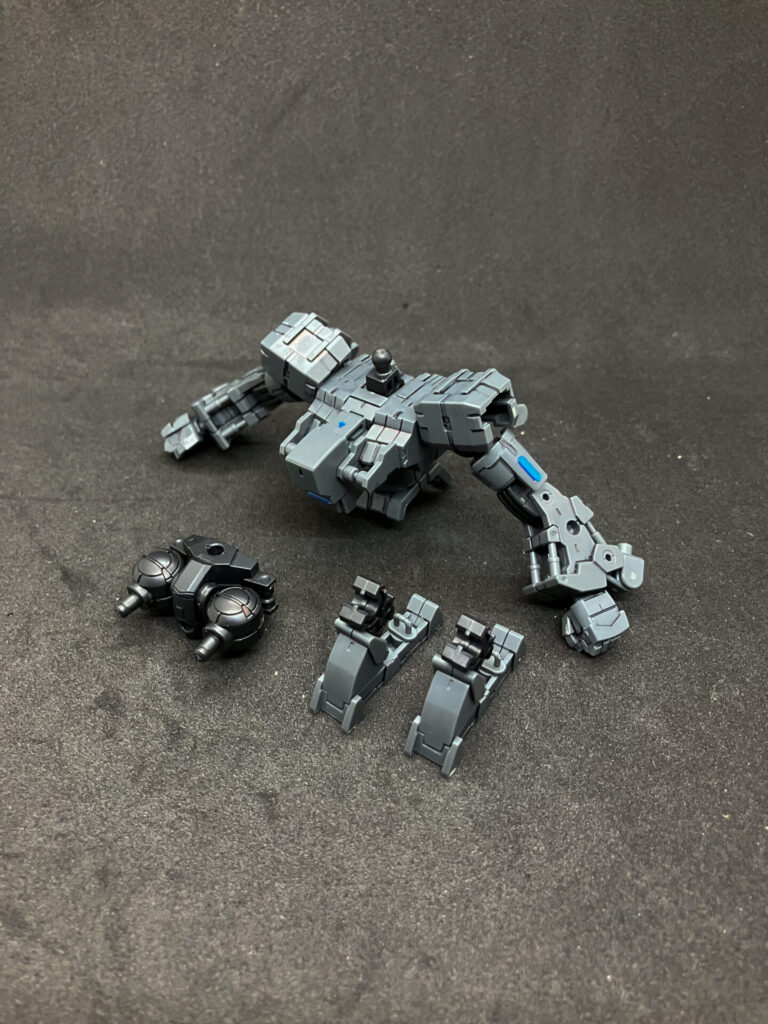 膝アーマーとしてOPS15の装甲、スネにOPS1のバーニアを追加。 モモからスネまではドッグメカ、足首は小型量産機。