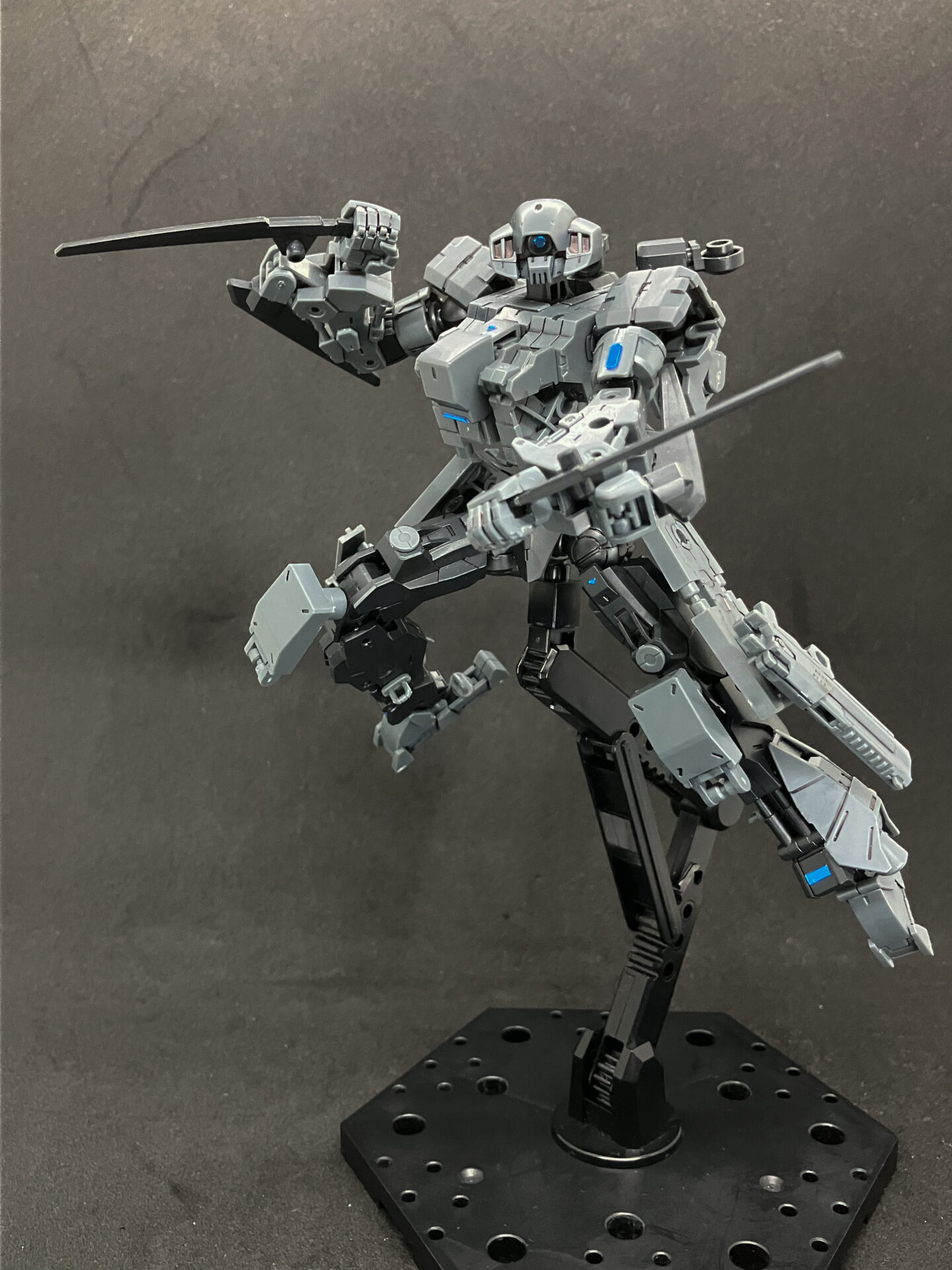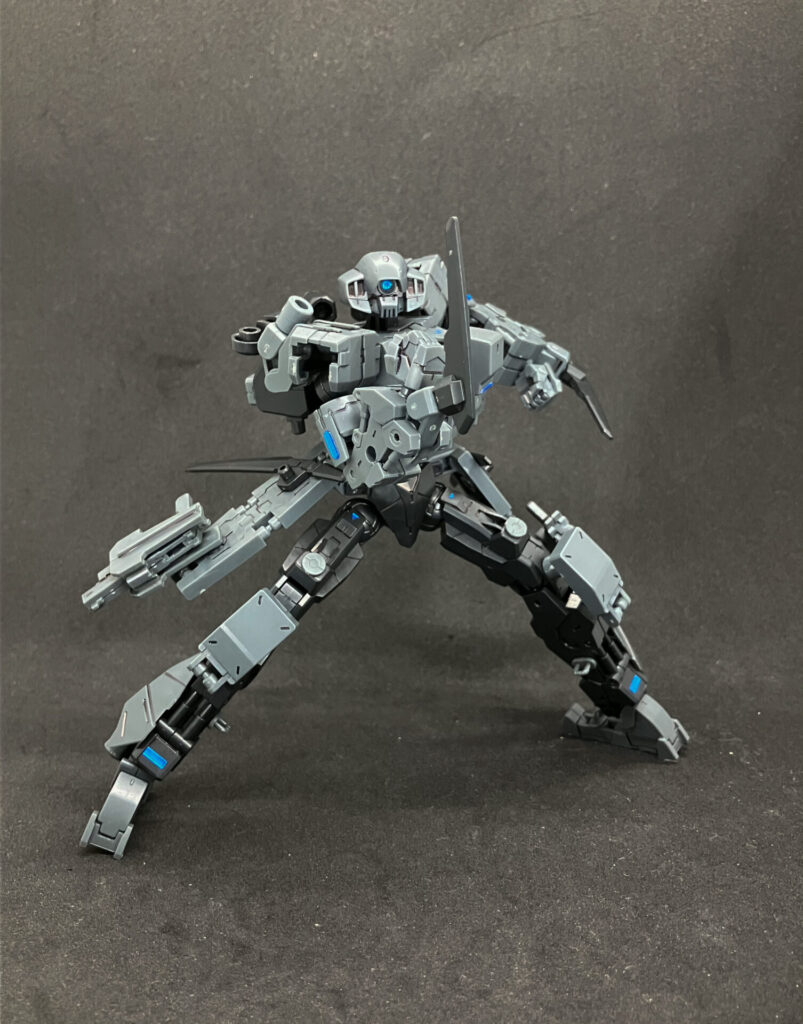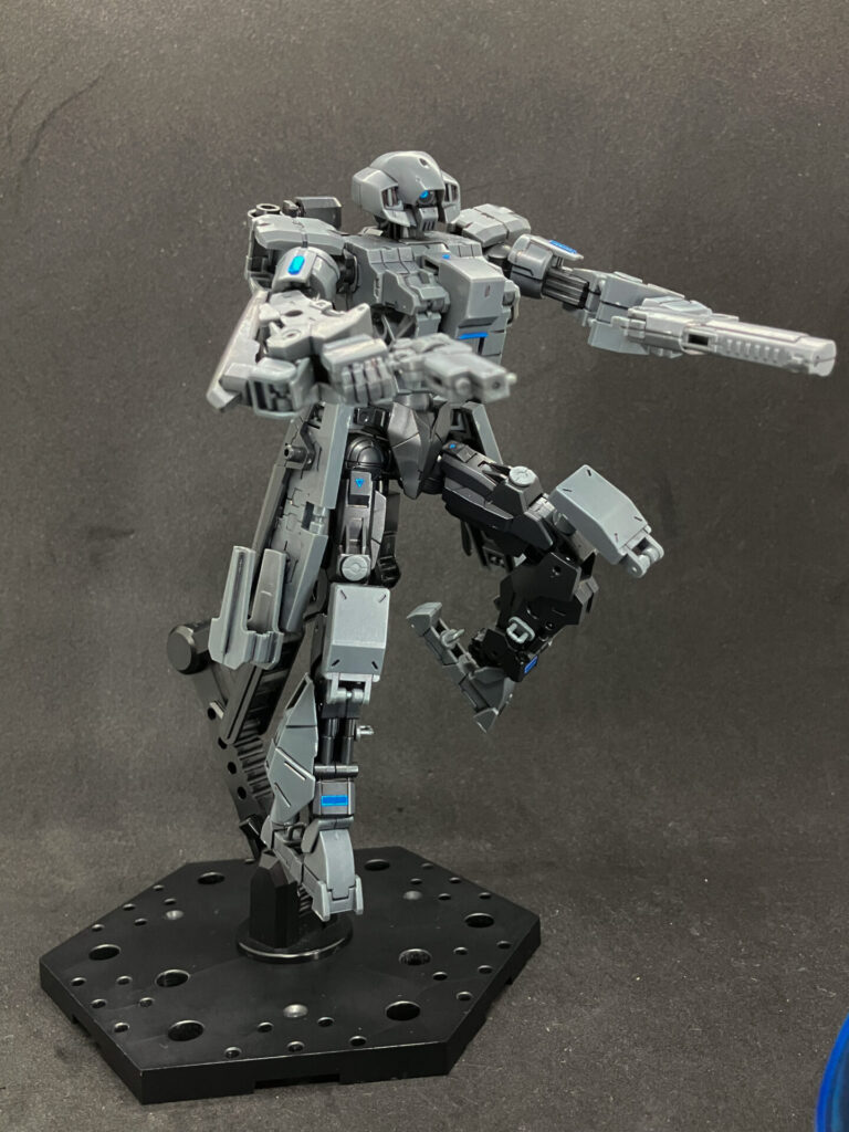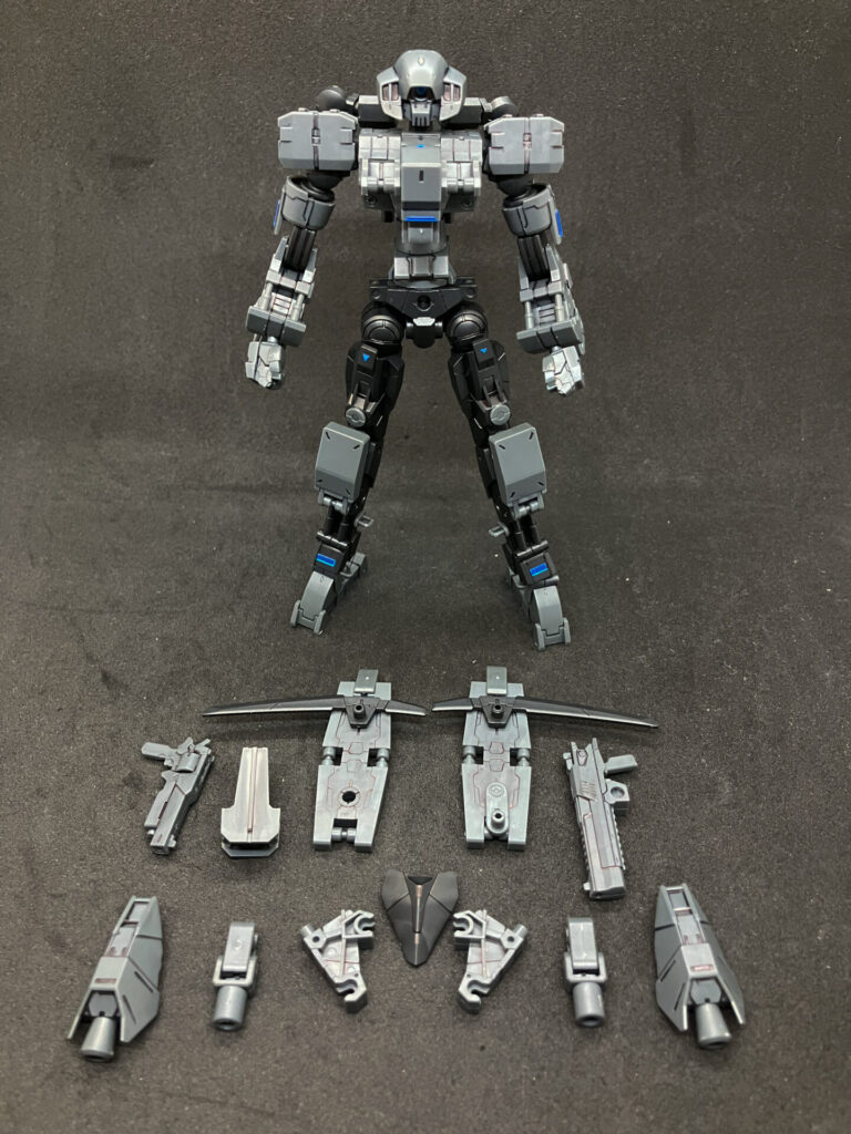 肩の後ろに可動ジョイントを備えていて装備を追加できます。
