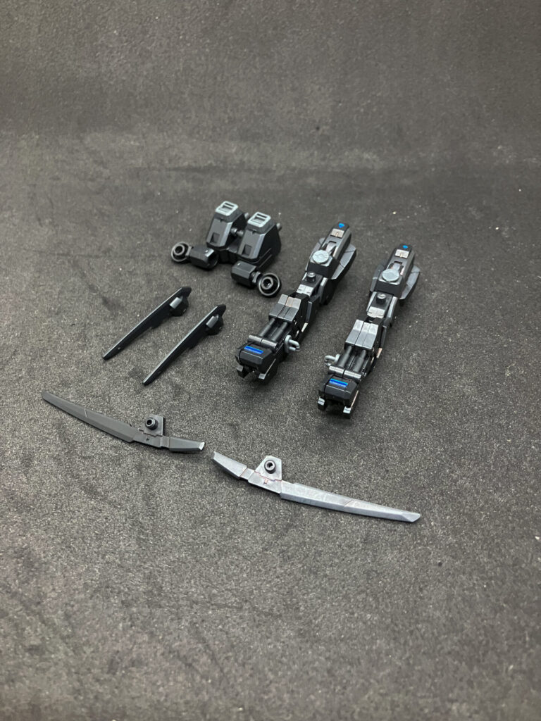 ほぼ丸ごと小型量産機のもので手首はOPS12からマクシオン系の1.2倍サイズを使用。手首のブレードはJA1-2と5で接続。肩後ろの方も同じです。