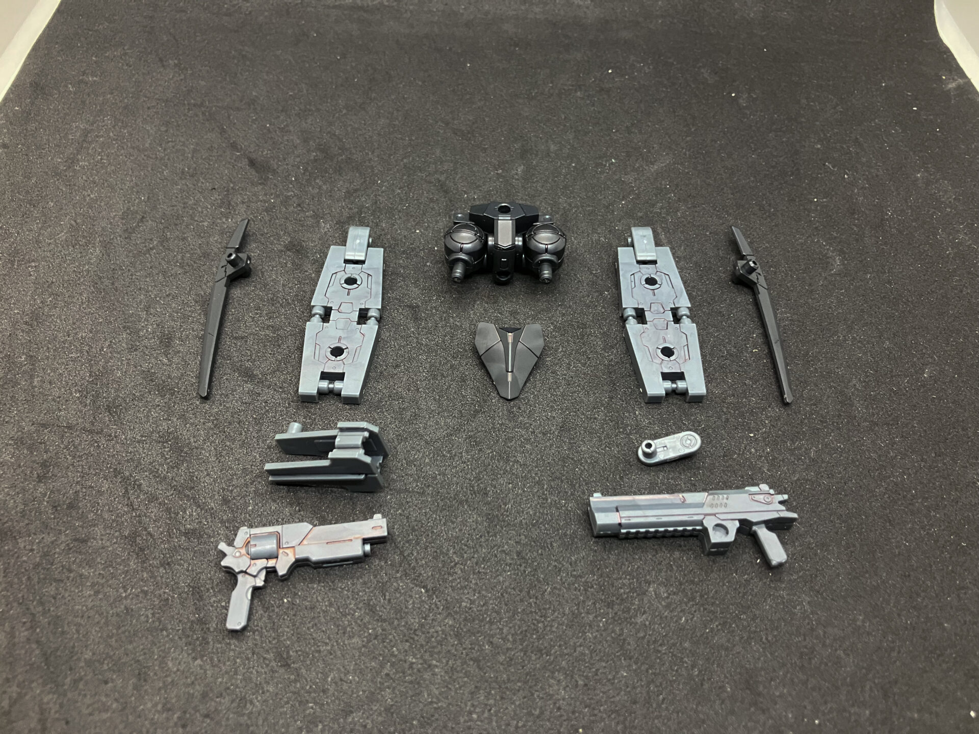 ドッグメカ由来のパーツはバックパックとスネ、刀剣類です。