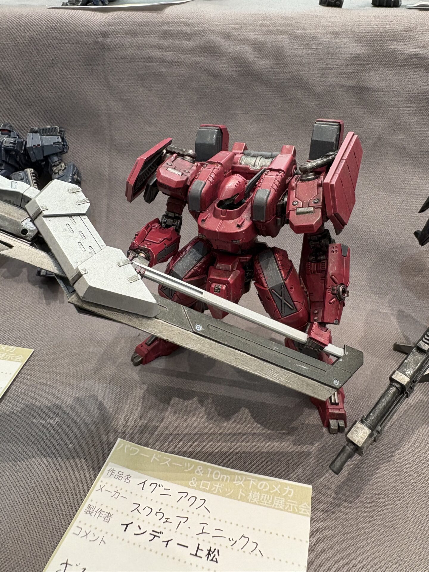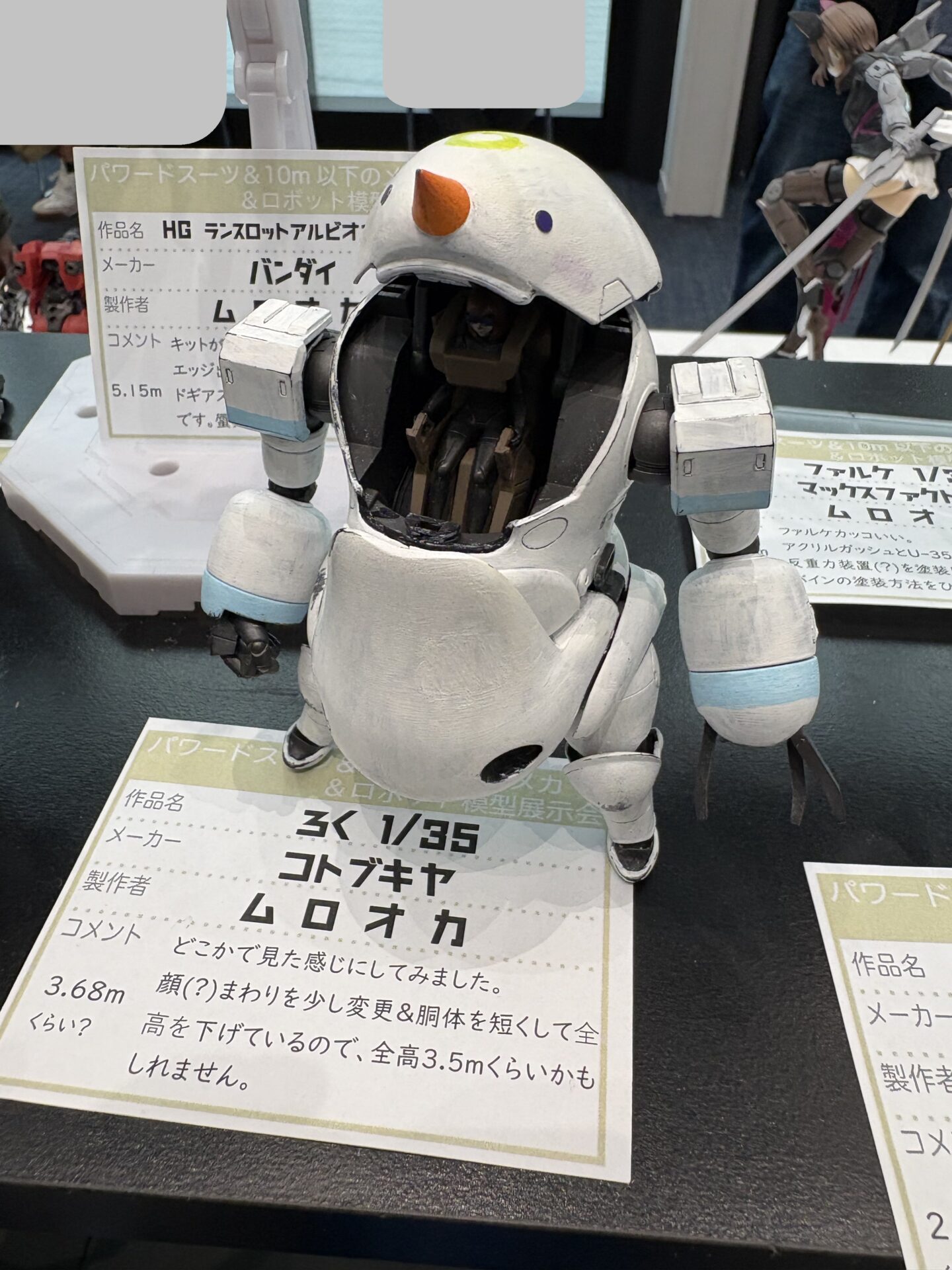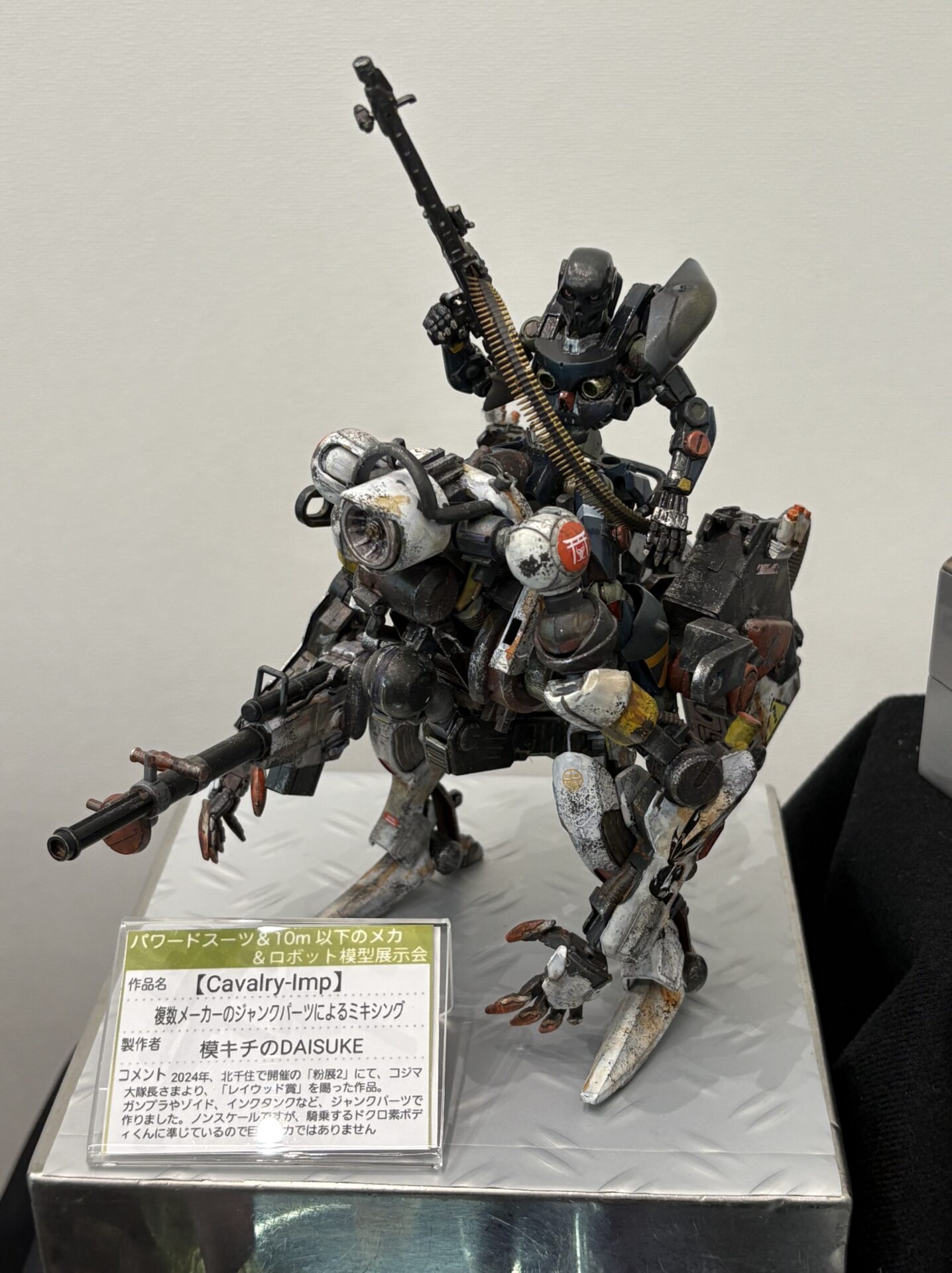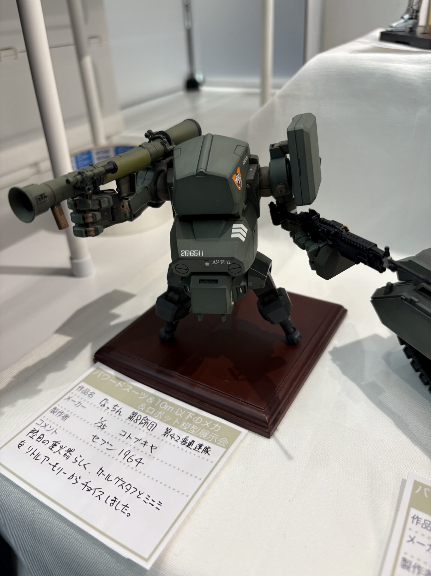 レポート:パワードスーツ&10m以下のメカ&ロボット模型展示会 2025 2025年10月12日(日)に東京都のふらっとにっぽりにて、「パワードスーツ&10m以下のメカ&ロボット模型展示会」が開催となりました。本イベントの詳細はこちらをご参照頂ければと思います。※上記画像は主催者様より引用させて頂きました。 ROBOSTAは一般人として皆様の作品を拝見させて頂きました。以下、撮影させて頂いた作品を列挙させて頂きます。どんな作品が展示されているか、雰囲気が伝わればと思います。※画像は順不同で失礼致します。 以上、最後までご覧頂きありがとう御座いました。その他のレポートはこちら。